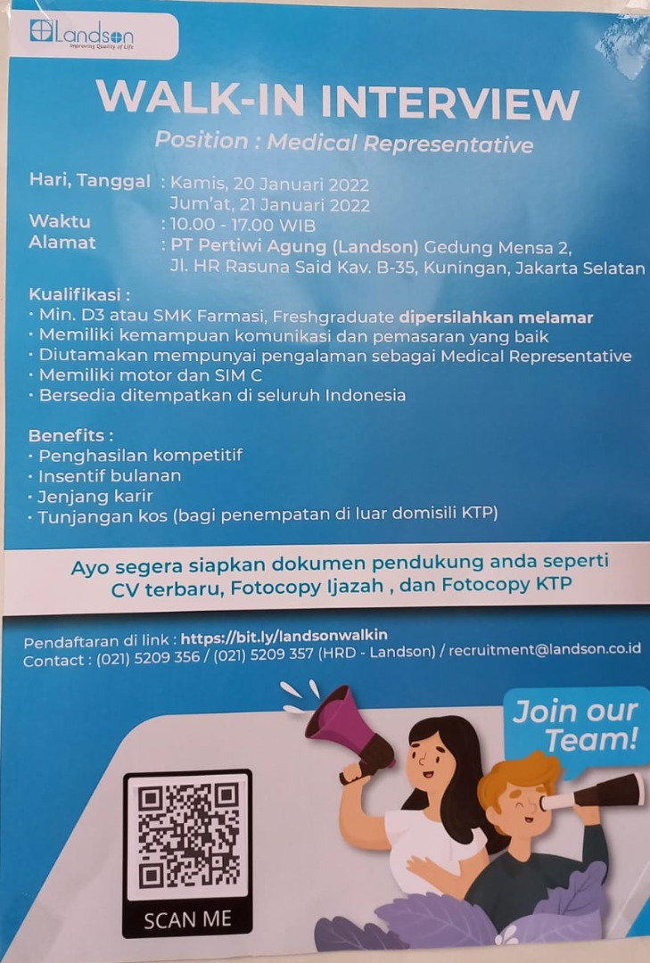 Contact : (021)5209356 / (021)5209357 (HRD - Landson)/ recruitment@landson.co.id